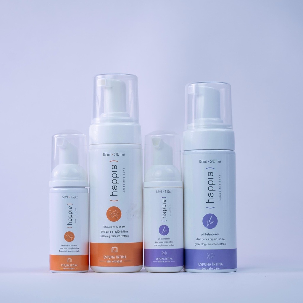 Como usar: Aplique a espuma íntima Happie & Co na área externa da vagina (vulva) com movimentos circulares, até que o produto limpe bem. Depois, enxágue em abundância.